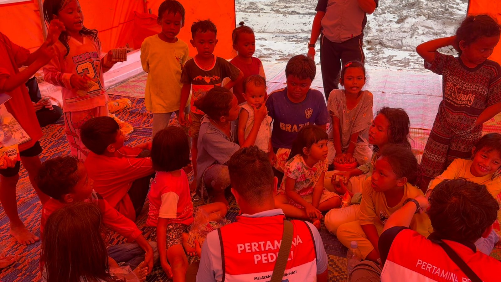 Selain bermain, para relawan juga mengajak anak-anak mengikuti berbagai aktivitas interaktif lainnya, seperti belajar pengetahuan baru dan bernyanyi bersama. Dalam salah satu video yang beredar, relawan tampak memandu anak-anak menyanyikan lagu Indonesia Raya di dalam tenda pengungsian.