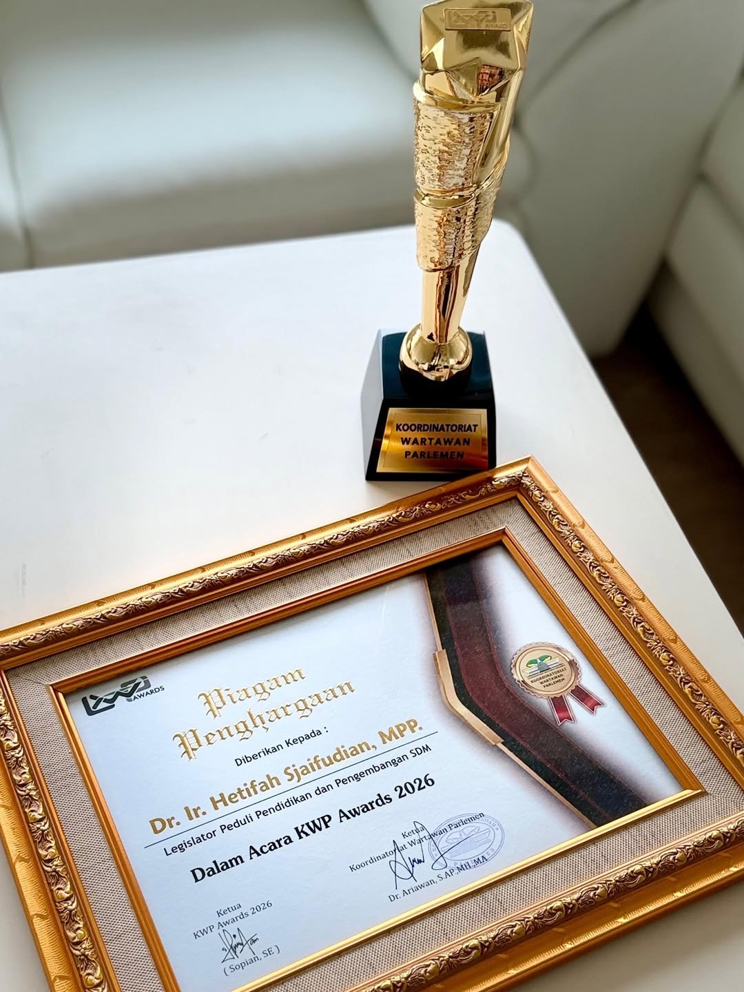 “Saya menyampaikan terima kasih dan apresiasi kepada Koordinatoriat Wartawan Parlemen (KWP) atas penganugerahan KWP Award 2026 kategori Legislator Peduli Pendidikan dan Pengembangan SDM. Penghargaan ini saya terima dengan penuh rasa syukur, sekaligus sebagai amanah untuk terus bekerja lebih keras dalam memperjuangkan kemajuan pendidikan nasional,” kata Hetifah, Kamis (16/4/2026).