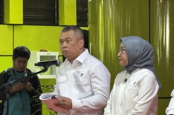 Menteri Perhubungan Dudi Purwagandhi saat konferensi pers di Stasiun Gambir, Jakarta, Selasa (10/2/2026).