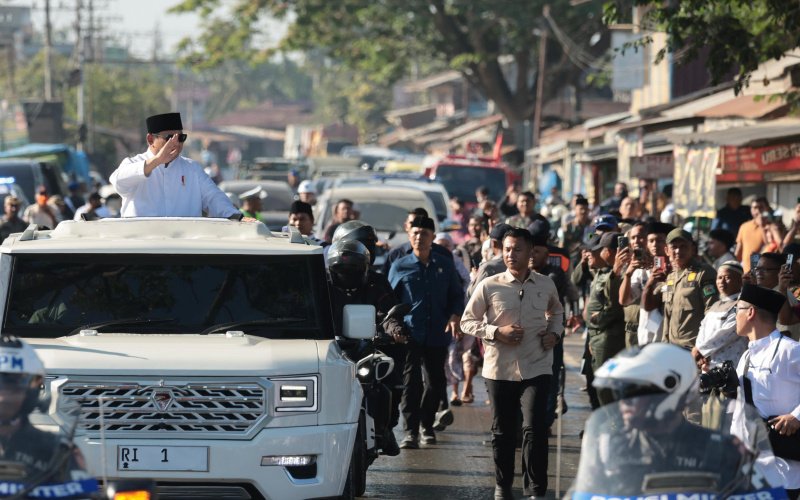 Lantunan takbir dan tahmid menggema mengiringi kedatangan Presiden Republik Indonesia, Prabowo Subianto, yang melaksanakan salat Idul Fitri bersama masyarakat setempat.