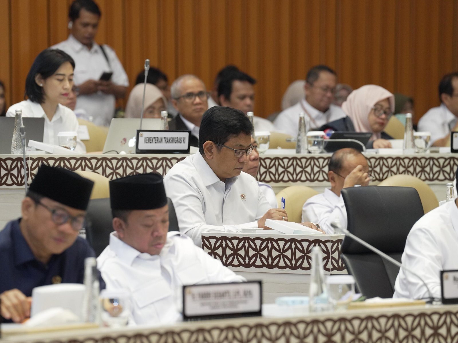 Dari Pemerintah, hadir dalam rapat itu Menteri Transmigrasi M. Iftitah Sulaiman Suryanagara, Menteri Desa dan Pembangunan Daerah Tertinggal Yandri Susanto, Menteri ATR/BPN Nusron Wahid, Wakil Menteri Transmigrasi Viva Yoga Mauladi, Wakil Menteri Desa dan Pembanguanan Daerah Tertinggal Ahmad Riza Patria, Wakil Menteri Kehutanan Rohmat Marzuki, dan Wakil Menteri Dalam Negeri Akhmad Wiyagus.