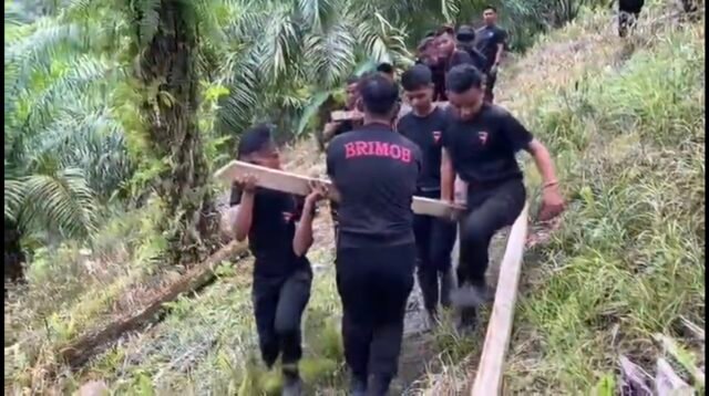 Respon Pidato Presiden Prabowo, Brimob Sulawesi Selatan Bangun Jembatan Gantung di Soppeng