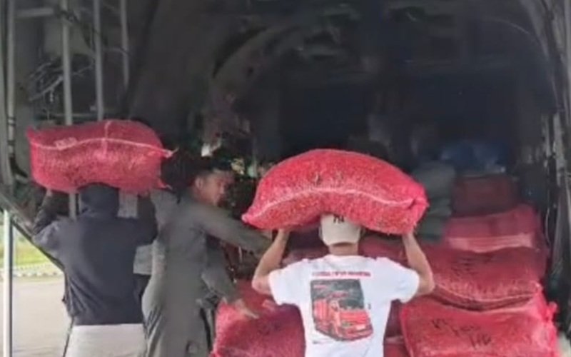 Dalam dokumentasi video yang dirilis, terlihat puluhan karung cabai dipindahkan dari truk ke dalam badan pesawat. Tidak hanya cabai, sejumlah komoditas pertanian lain seperti tomat dan kol juga turut dimuat ke dalam lambung Hercules.